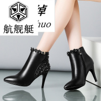 2017欧洲站新款秋冬季花朵侧拉链靴子真皮短靴女高跟鞋马丁靴40大码