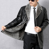 2017年新款保暖加绒加厚男士皮毛一体真皮皮衣男士皮克服黑色