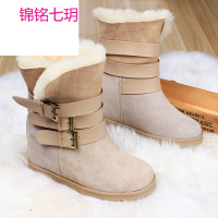 锦铭七玥真皮高筒雪地靴女内增高羊皮毛一体雪地靴女鞋