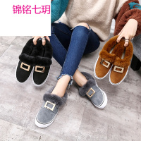 锦铭七玥唐嫣款皮毛一体短靴雪地靴豆豆鞋毛毛鞋平底厚底真皮休闲单鞋女鞋