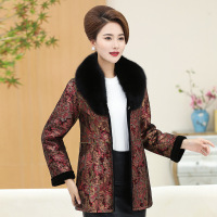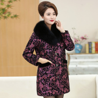 中老年真皮毛一体印花皮衣女大狐狸毛领羊毛内胆妈妈装大码冬外套CYDDWQE
