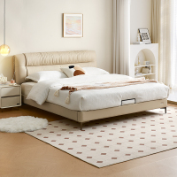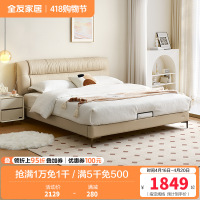 全友家居 现代轻奢真皮软包双人床小户型卧室奶油风皮艺床