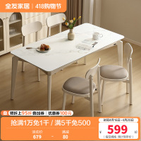 全友家居现代简约餐厅钢化玻璃岩板可选可伸缩餐桌方变圆功能圆餐桌椅