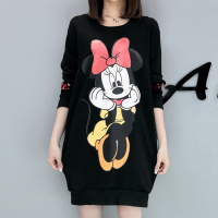 大码女装2017秋季新品韩版卡通米奇宽松遮肚中长款长袖卫衣连衣裙