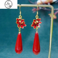 JiMi花红耳环耳坠复古红色中国风古风古装旗袍新娘耳饰喜庆耳钉