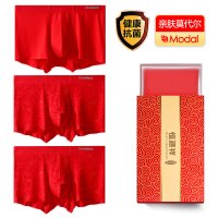 南极人红色本命年莫代尔内裤男抗菌纯棉裆结婚喜庆本命年四角短裤