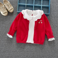2018女童纯棉针织开衫宝宝欧美风简约百搭樱桃刺绣纯薄款毛衣外套