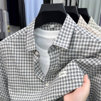 夏新款男士纯棉商务休闲简约免烫翻领通勤百搭长绒棉短袖衬衫