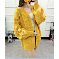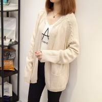 秋季新款个性编织麻花纹纯色针织毛衣开衫女宽松长袖休闲外套