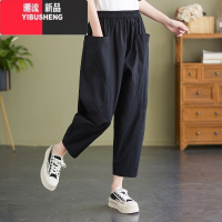 YIBUSHENG大码哈伦裤女2024新款宽松遮肉显瘦九分裤纯色百搭休闲裤子