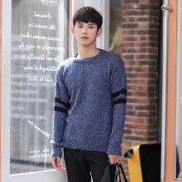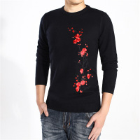 2017秋冬新款黑色系列圆领毛衣T恤男韩国数码印花镶钻纯色针织衫