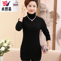 卓勝基中老年女装春装中长款打底衫纯色妈妈装秋装针织衫套头中年包臀裙黑色