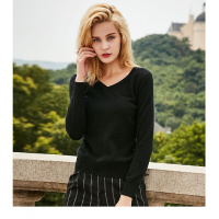 女士纯山羊绒衫V领修身纯色短款毛衣秋款针织衫黑色黑色