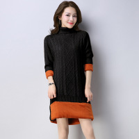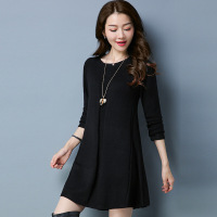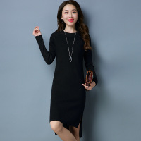 秋冬新款韩版纯色中长款套头连衣裙女长袖圆领针织衫黑色均码