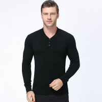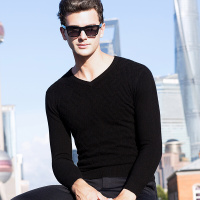 男式纯羊毛衫2017秋冬套头V领纯色针织衫打底衫保暖毛衣上衣黑色