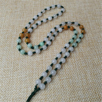 冰种保真天然翡翠三彩全珠项链挂件绑吊坠绳玉珠圆珠子石头玉链子_1