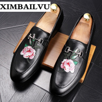 品牌新款马衔扣平底绣花乐福鞋男发型师透气套脚一脚蹬懒人皮鞋增高舒适柔软豆豆鞋驾车鞋