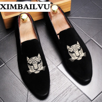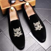 品牌舒适透气软底驾车懒人豆豆鞋男英伦发型师休闲套脚鞋亮皮刺绣潮男单鞋夜店潮鞋子男