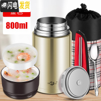 三维工匠焖烧杯壶304不锈钢保温饭盒24小时保温桶上班族学生女便当盒 金色800+保温提包(送餐具)