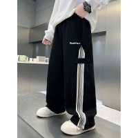 男童直筒裤子儿童2026春秋新款男孩运动裤宽松休闲裤黑色灰色时尚
