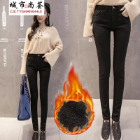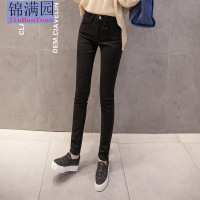 锦满园 2018女牛仔裤女新款高腰加绒秋冬大码装黑白时尚修身女裤