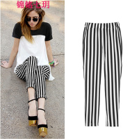 锦铭七玥夏季黑白竖条纹显瘦加大码女裤子 小脚铅笔裤休闲哈伦裤女潮