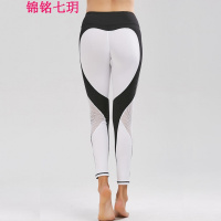 锦铭七玥2017欧美爱心黑白拼色拼接透气修身运动瑜伽打底裤女裤