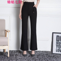 锦铭七玥黑白竖条纹女裤春季新款显瘦微喇叭裤女高腰大码休闲裤通勤长裤