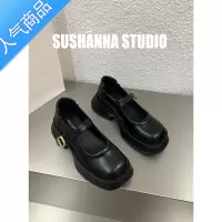 SUNTEK厚底英伦风小皮鞋女鞋子2023年春秋复古玛丽珍乐福鞋夏季黑色单鞋