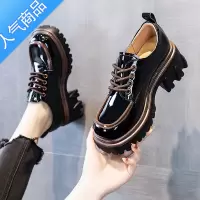 SUNTEK小皮鞋女英伦风2023新款秋季增高厚底单鞋黑色漆皮春秋乐福鞋