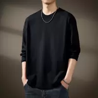 啄木鸟260g重磅纯棉黑色长袖T恤男春秋季圆领卫衣打底衫内搭上衣