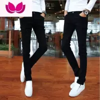 七斓春季青年弹力显瘦黑色牛仔裤男士韩版修身小脚裤男潮流百搭长裤子