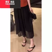 YIBUSHENG大码季宽松高腰阔腿休闲裤女微胖mm显瘦松紧腰黑色波点雪纺裙裤