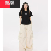 YIBUSHENG黑色圆领正肩t恤女2024年新款季宽松内搭短袖显瘦打底上衣