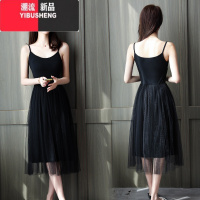 YIBUSHENG黑色中长款背心裙女装秋蕾丝内搭吊带连衣裙大码宽松网纱打底裙