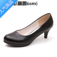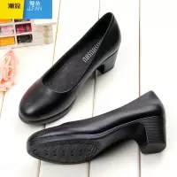 聚范职业高跟鞋女黑色粗跟单鞋中跟软底皮鞋圆头酒店空姐工作鞋浅口鞋