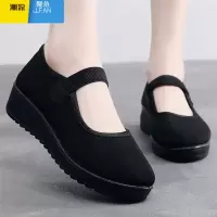 聚范老北京黑色女士高跟拉带布鞋舞蹈鞋酒店工作鞋黑平绒浅口单鞋