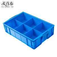 美克杰长方形塑料盒分隔式周转箱零件盒分格箱多格箱螺丝盒分类盒收纳盒 570六格蓝色[570*420*15