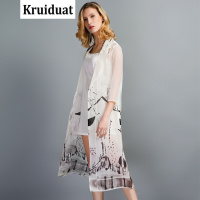 Kruidvat印花防晒衫夏季七分袖披肩外套长款白色定位花