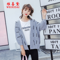 维喜黛2017秋季新款短款原宿风bf宽松百搭七分袖毛衣外套针织衫开衫