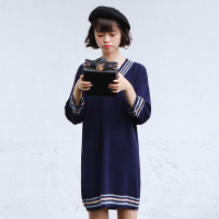 珂依舍2017秋装新款中长款毛衣女套头V领针织衫2017秋装宽松七分袖打底外套