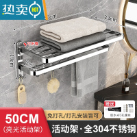 敬平卫生间置物架浴室毛巾架304不锈钢厕所浴巾架免打孔壁挂式杆架子 B款304折叠毛巾架50浴室置物架