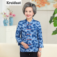 Kruidvat中老年人2017夏季时尚女套装圆领印花开衫七分袖上衣松紧裤套装ZLL