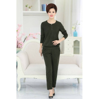 妈妈装春装套装40-50岁休闲中老年女装长袖上衣+松紧裤子真两件套