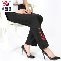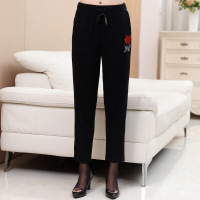 旗下中老年裤子女裤松紧裤200斤宽松加肥大码妈妈长裤高腰弹力休闲裤黑色