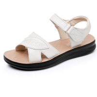 SUNTEK夏季新款妈妈凉鞋洞洞鞋复古平底圆头宽脚中老年休闲皮鞋女单鞋潮
