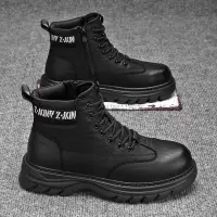 秋季新款黑色马丁靴男士厚底增高英伦风工装靴子高帮休闲男鞋