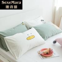 珊诗丽纯棉水洗棉枕套单只全棉床品枕头套毛巾刺绣枕芯套单件一对拍2水洗棉枕套(绿底-小兔子)48cmX74cm