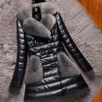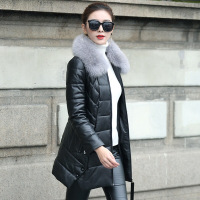 真皮皮衣女羽绒服中长款外套绵羊皮修身加厚狐狸毛领冬