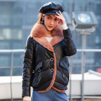 冬季真皮皮衣女绵羊皮羽绒服短款水貂毛狐狸毛领外套黑色CYDDWQE